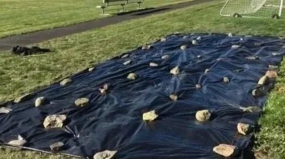 In the fall of 2017, the lawn was rototilled, covered with black plastic (solarized) and weighted with stones for the winter.